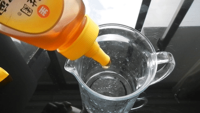 ▲倒完蜂蜜直接加对应的温水化开。