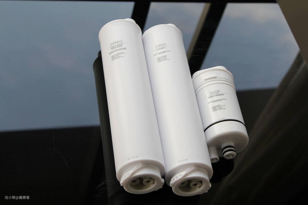▲净饮机一共配备了3根滤芯,分别是:2号PAC复合滤芯(一级滤芯),1号RO反渗透膜滤芯(二级滤芯),3号CF滤芯(富锶碳棒)