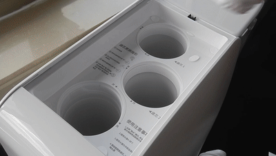 注:首次使用时,饮水机应先放在平面上,不要急着通电!随后取下水箱,加入自来水至MAX处,水箱装回后再接通电源,此时净饮机自动对滤芯系统和管路冲洗2分钟,清洗完毕后我们把水箱里的水倒掉再加入新水,这样就能正常使用了。根据官方提示,为了获得卓越水质口感,我们可以长按智能洗3s进行手动冲洗(3次)。