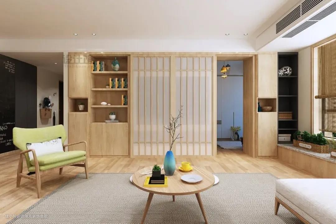 ▲电视墙左侧有房门,在右侧加入高柜,也可以一定程度缓解房门的突兀视觉。