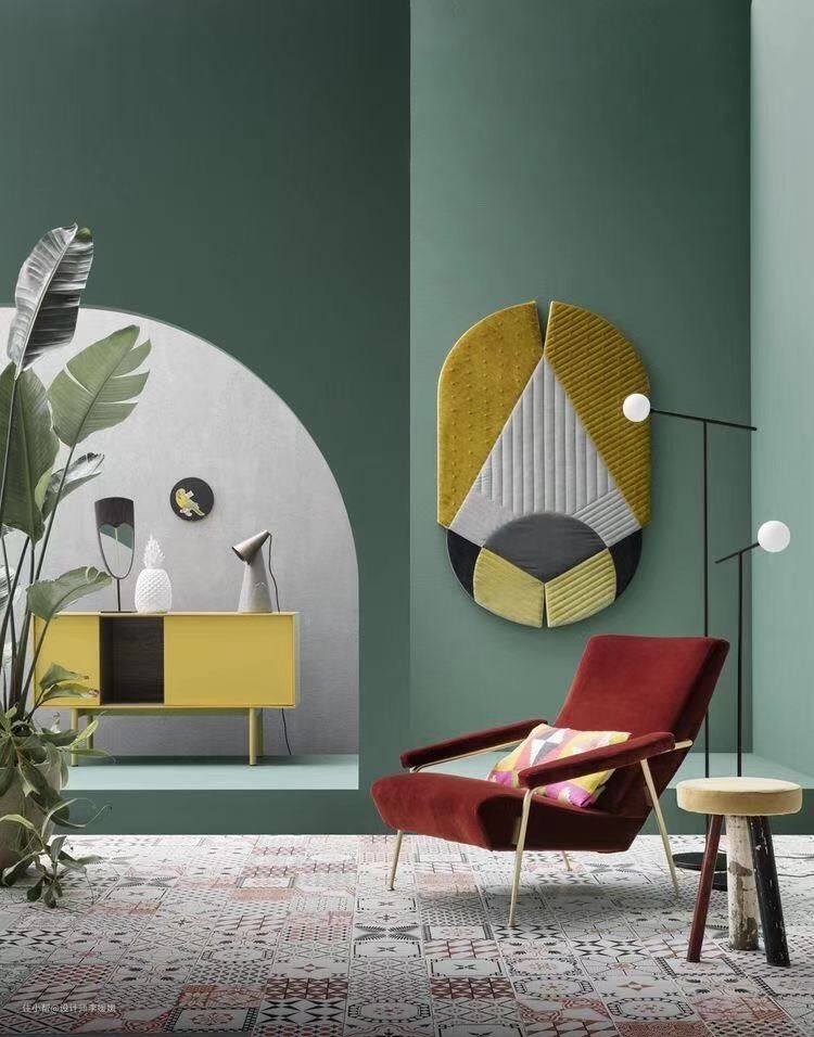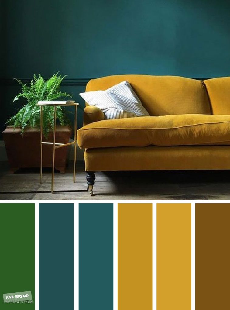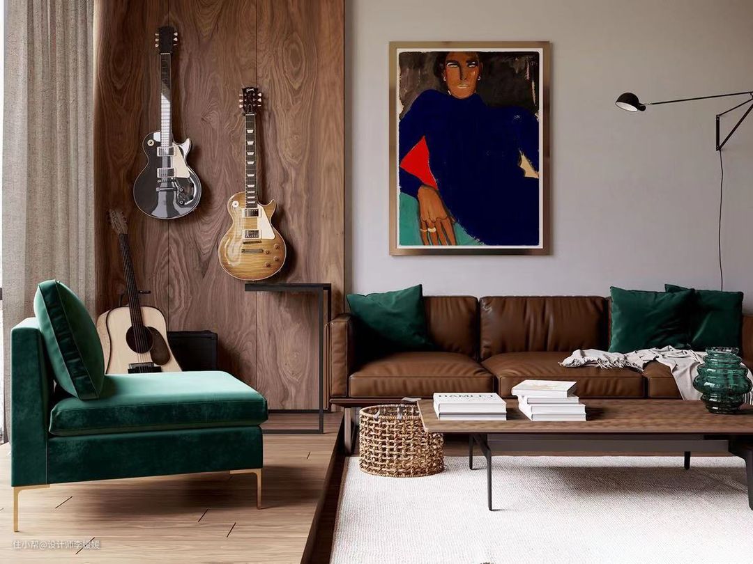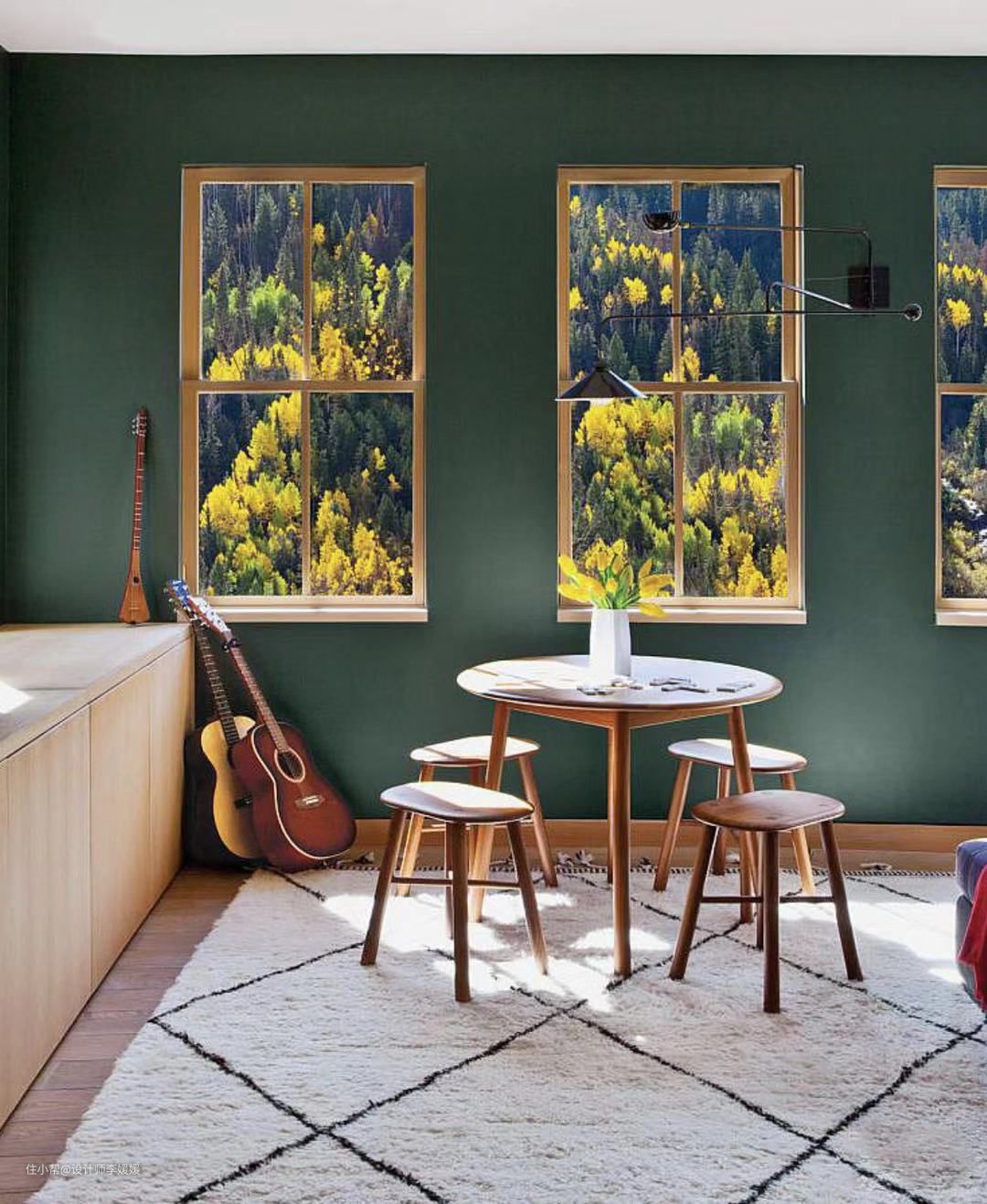 墨绿与木色/皮革棕搭配也是属于绿色系与黄色系的邻近色搭配。两个具有秋冬感的颜色在一起产生独特的高级美,很显气质。明度与纯度保持统一的两种色彩会产生奇妙的反应,雅致却不高冷,由情调生发出的温度不仅让空间成为经典的存在,还会显现品位。