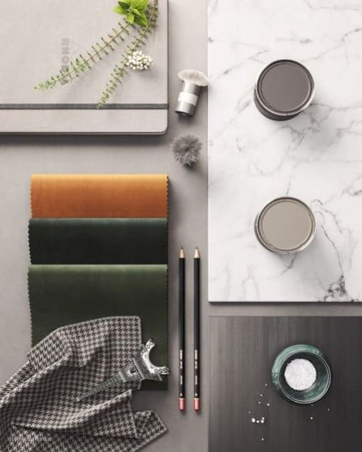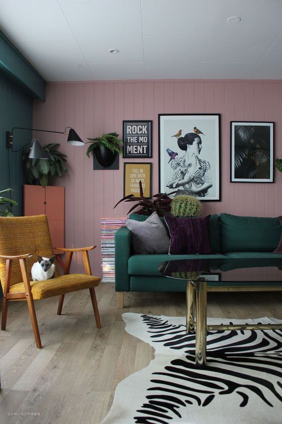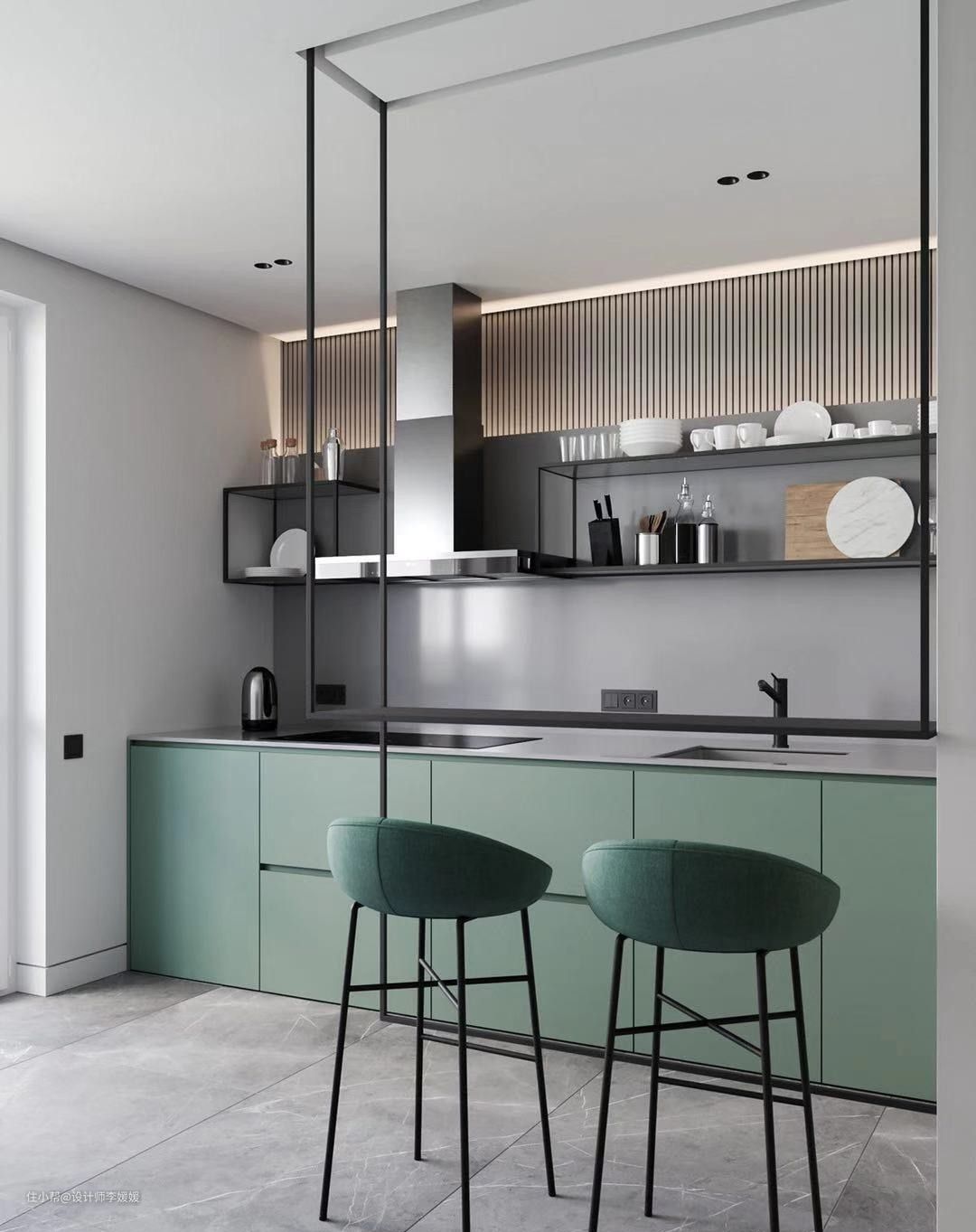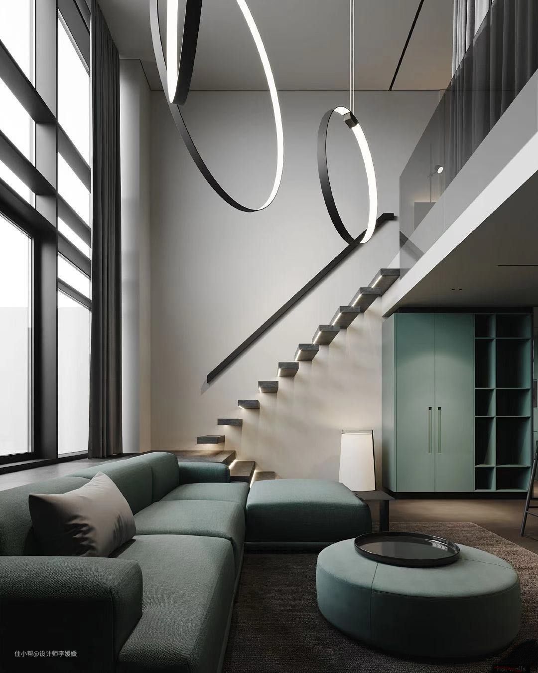 墨绿色是相对比较暗淡的颜色,而黑白灰能很好地中和协调它。当它与黑白灰搭配时时尚气息十足,都市精英范立显。尤其在公寓设计中运用较多。