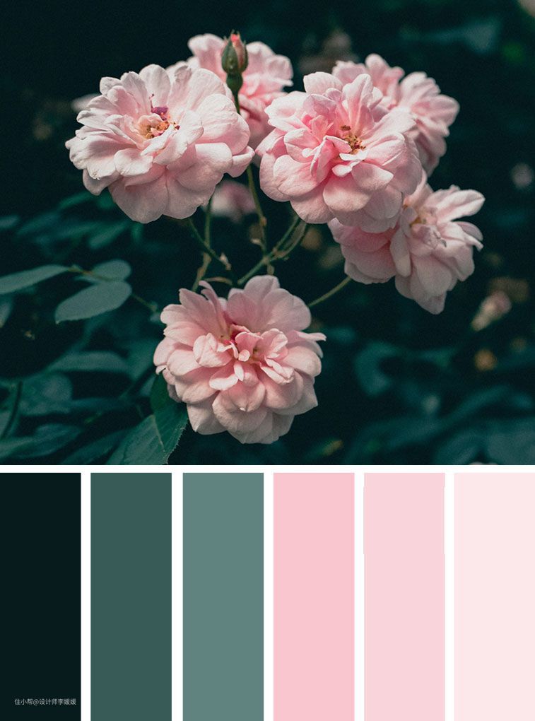 墨绿色搭配浅粉色,也是一个很耐看的组合。搭配偏灰调的粉色,让人眼前一亮,复古与少女心兼具。饱和度很低的浅粉色不会过于甜腻,与墨绿色组成CP清爽又干练,却又不失少女心。