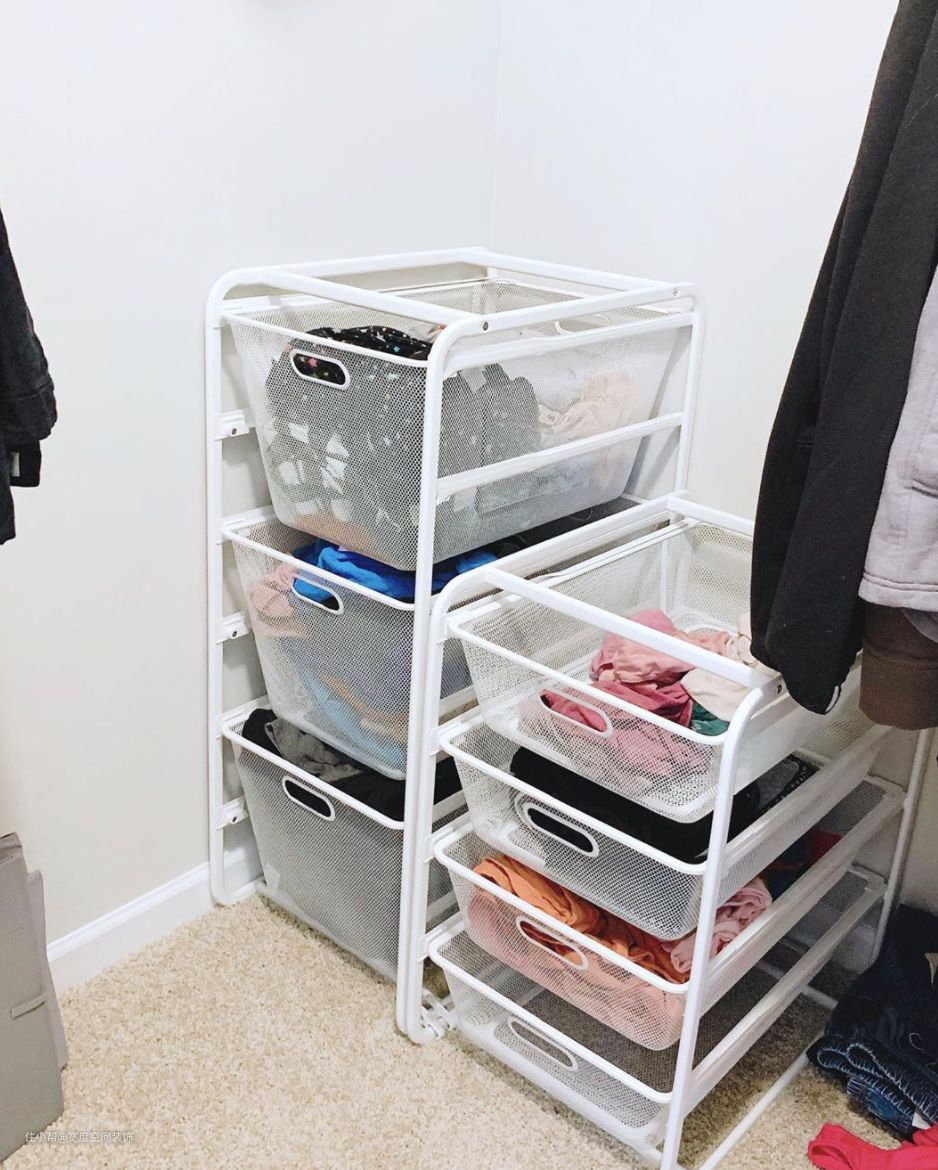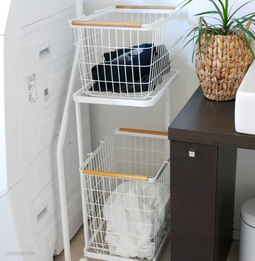 密网篮也不错。能叠放、能抽拉,用着很顺手方便、能积攒不少脏衣服呢。并且占地儿小,一个角落就能打造出一个容量大的脏衣区,不会显得很杂乱。这样的材质,放到卧室、卫生间洗衣机旁都可以。
