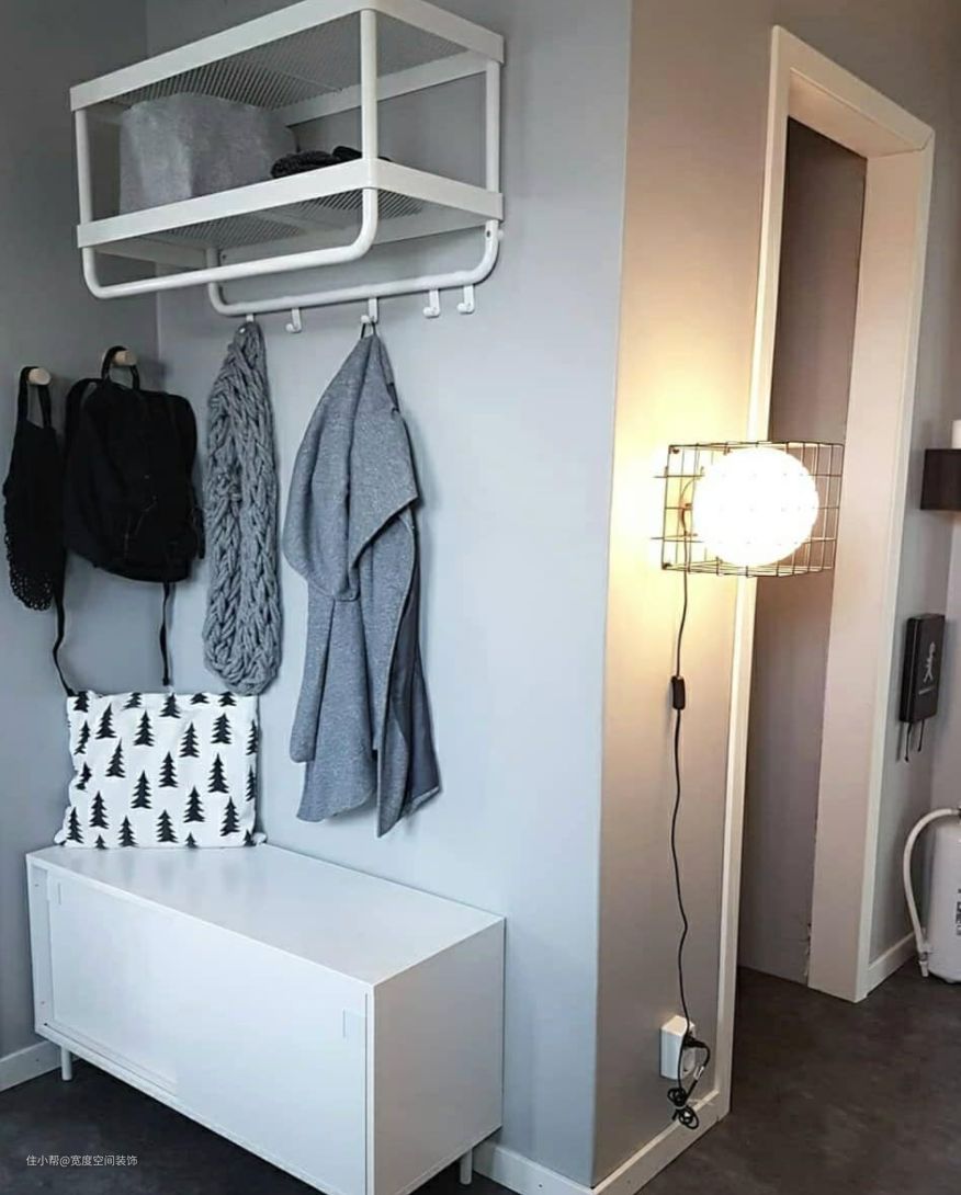 用宜家的马凯帕衣帽架来放置外套、包包、围巾等,也很方便。玄关小甚至没有玄关的人家,都可以尝试下。