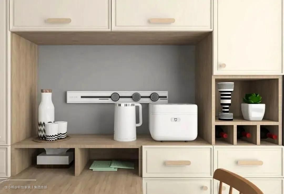 把厨房小电器外移之后,想要喝杯咖啡、热个牛奶,我们都不用再走进厨房。简单几步就能解决,大大提高生活的幸福感。