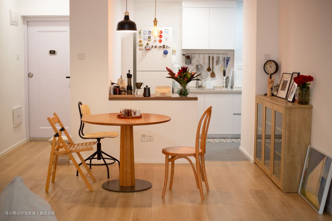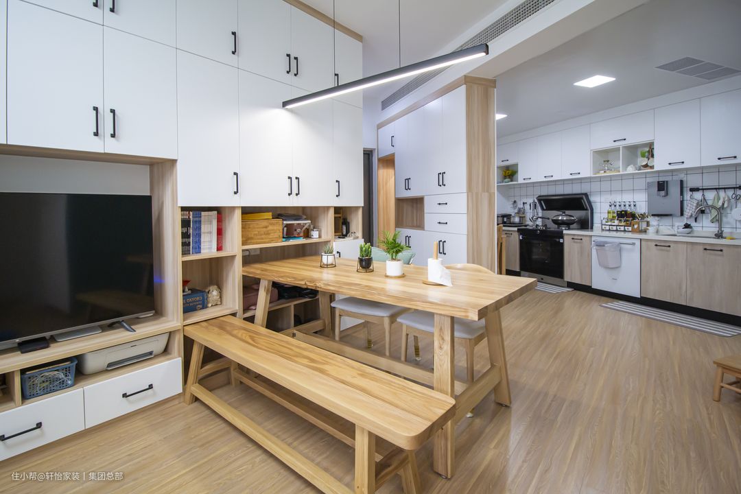 餐边柜与餐桌的一体化设计,是小户型家庭的福音。传统的餐桌布局,是极其需要空间的。然而作为打工人的我们,局促的薪水能买得起房就已经很了不起了。