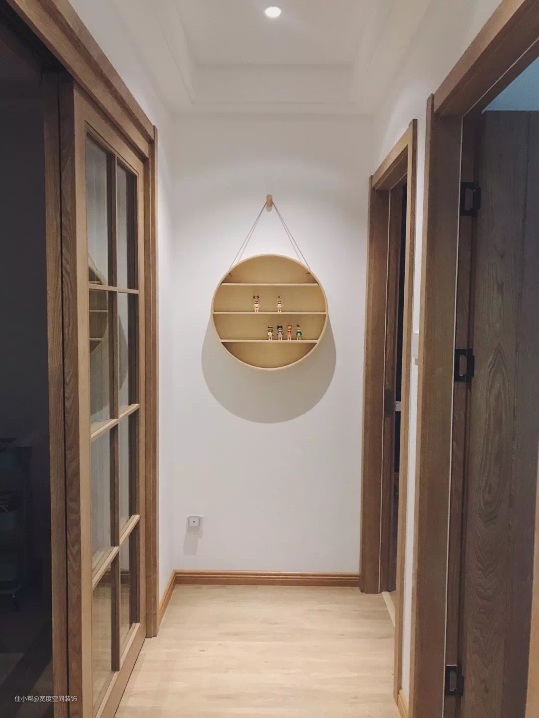 走廊作为大多数户型里的通道动线空间,由于面积尺寸都比较紧凑,因此都是无法做太多的实用性设计,而且很多户型的走廊尽头都是一面墙的。