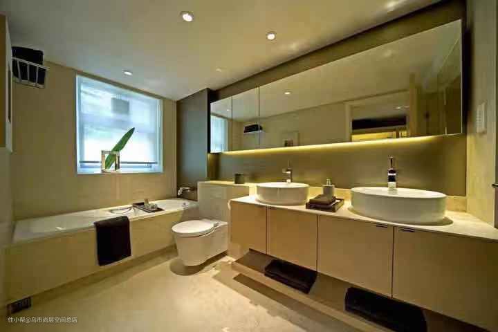 7.镜前灯要有防眩光的装置,天花中间的筒灯最好选用有磨砂玻璃罩的(现在流行的暗藏镜前灯,或在吊顶处使用射灯照明)。