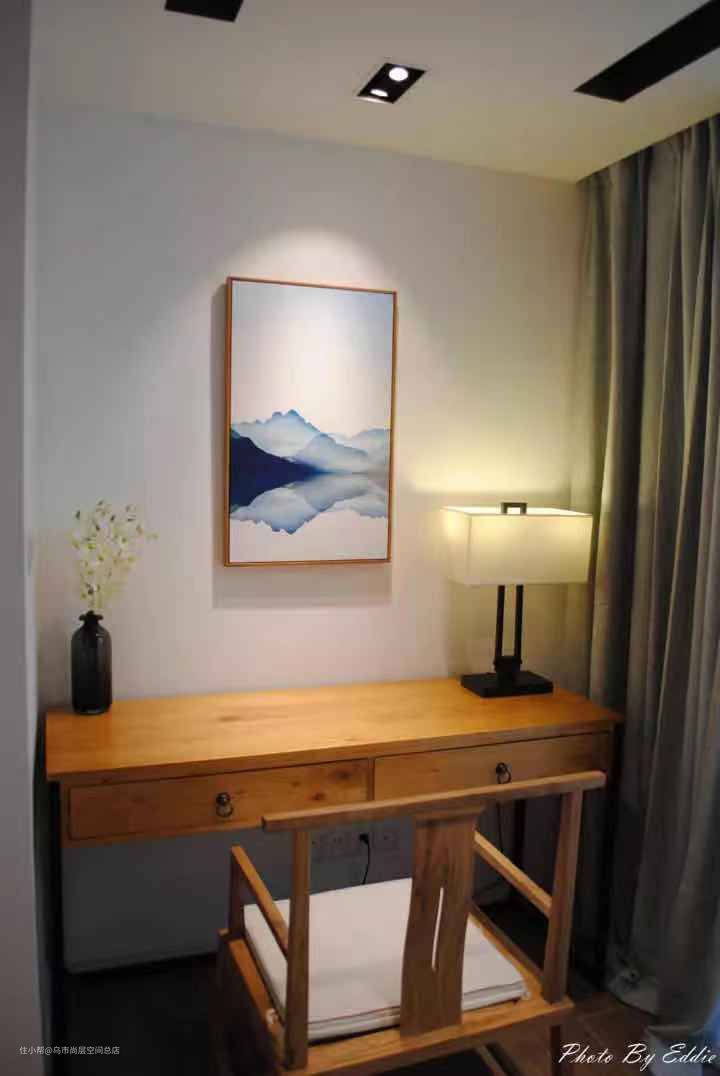 上图是我设计的写字台区,打上灯光立马就体现挂画的品质了。(46平米2房)