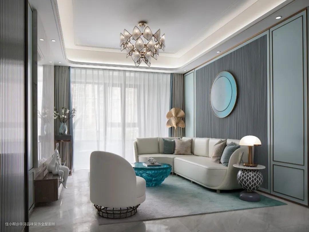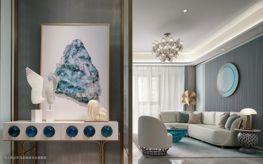 96㎡现代轻奢,淡蓝色的优雅,精致艺术的家