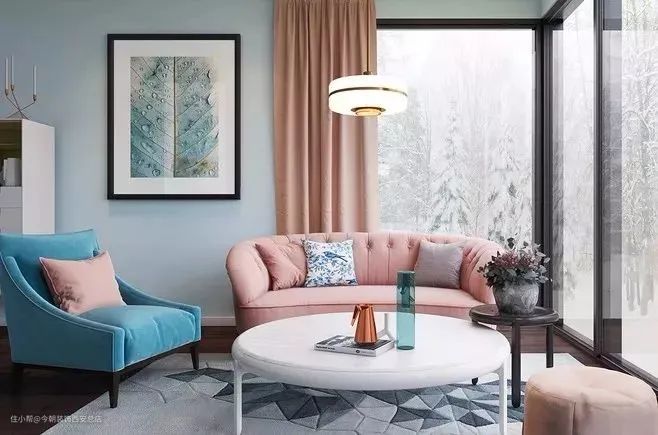 布置建议:不要把一套半沙发,或方圆其他形状的沙发摆在一起。看起来可能像婚外情。即使是混搭,材料和形状也最好不要有太大的差异。