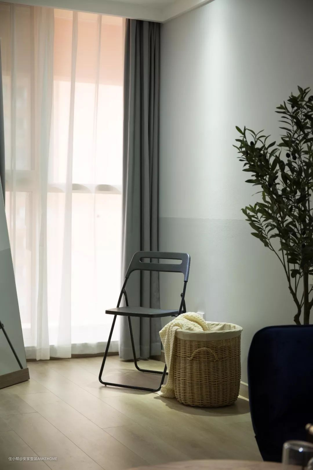 65平的简约风小户型二居室,灰色与白色做拼色墙