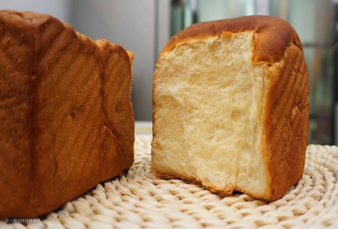 首烤的吐司面包成品除了颜色略深外,细腻程度,弹性,口感啥的我都非常满意,一点也不干。