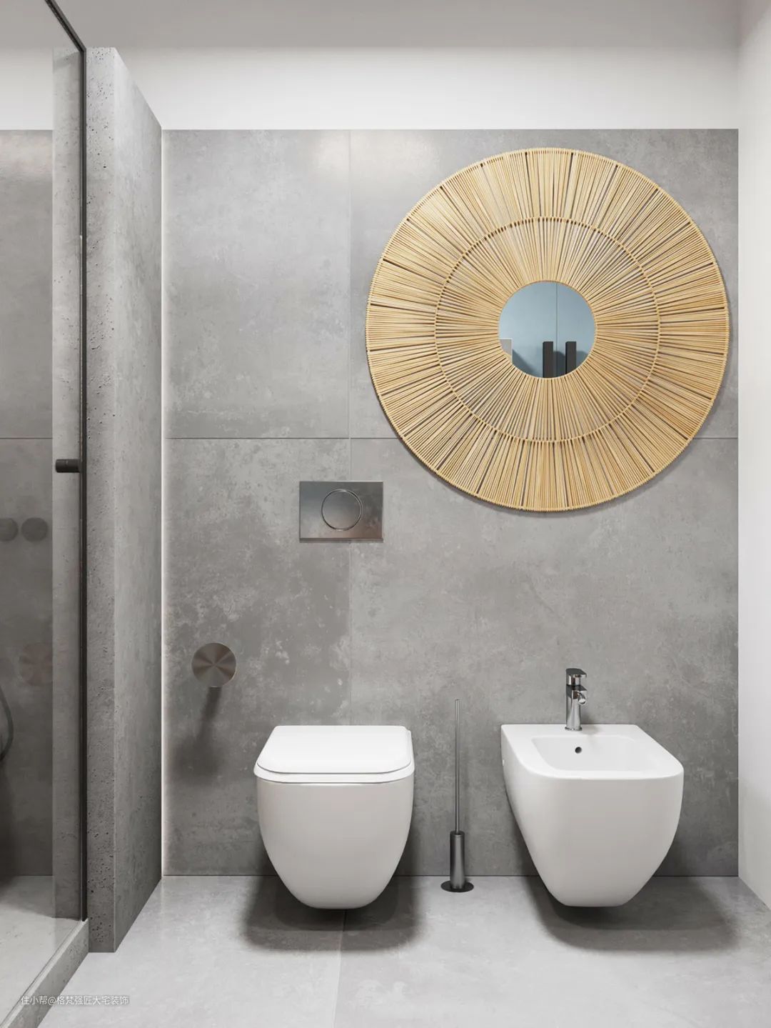 ▲马桶+妇洗器组合,,后方墙面一个独特的编织墙饰,使得如厕体验也更加舒适自然。