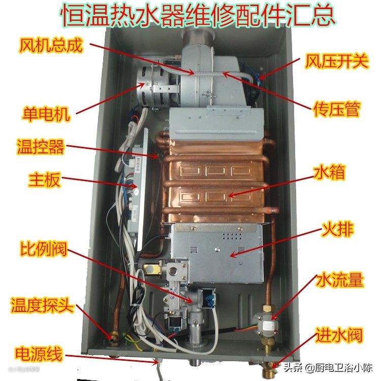 智能恒温燃气热水器维修入门基础知识,配件名称以及作用详解免费
