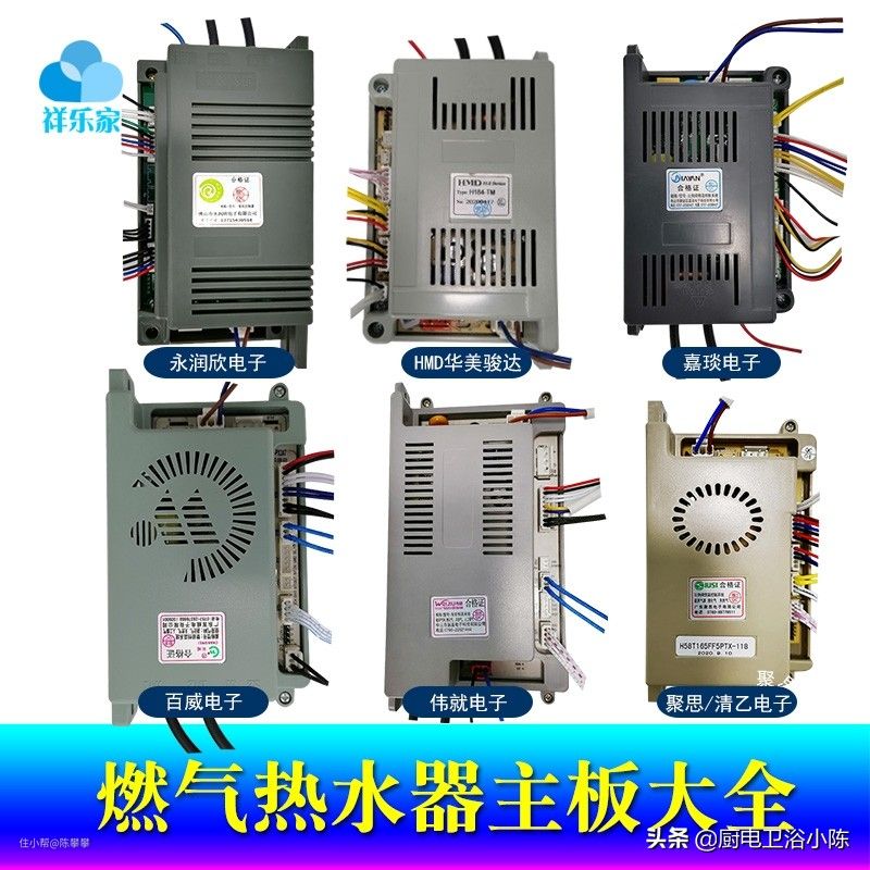 ①通过信号线连接水流传感器、显示操作板、感应针、风压开关、温度传感器、温控器等信号探测元件,接收热水器运行信号。