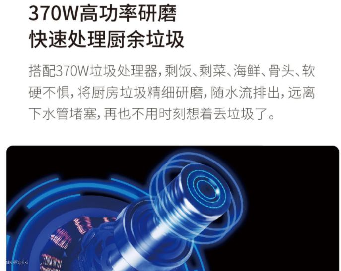 美仕杰的这款水槽搭载的是370w的高功率研磨处理器,吃完饭之后的厨余垃圾就不需要留在屋里了,还给家居一个清洁的环境。