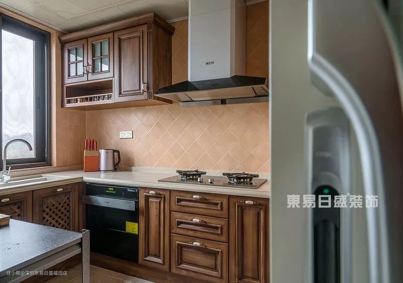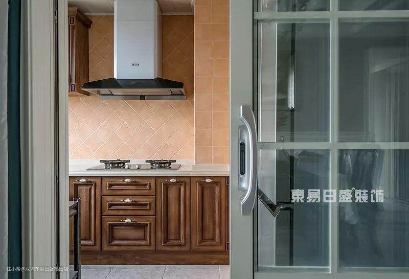 一般家里做的就是瓷砖贴到顶,方便清洗,也方便发现油渍。