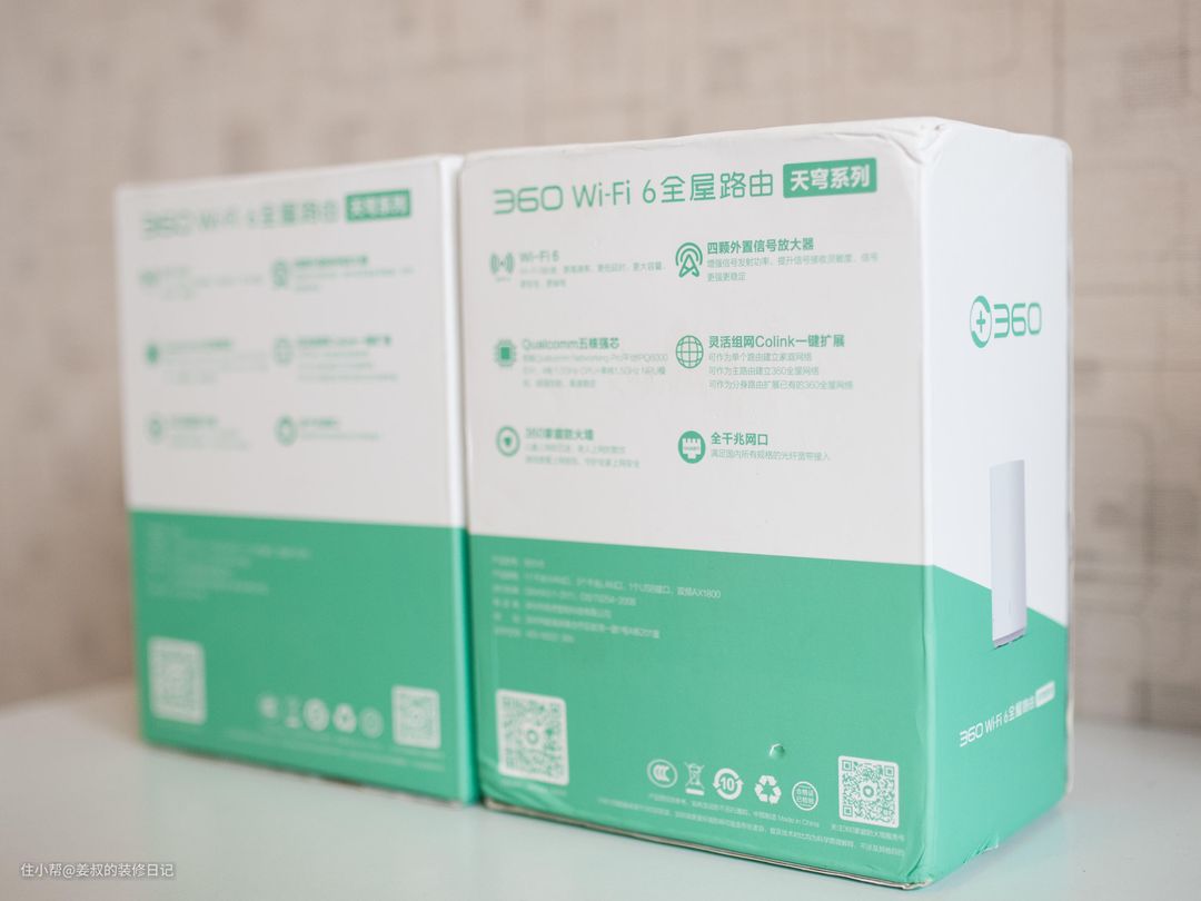 我是将主路由放置在客厅弱电箱附近,这样可以覆盖整个客厅、卫生间和厨房的网络,另外一个路由器放置在卧室,这样可以覆盖主次卧网络。360WiFi6全屋路由套装两台,在出厂时已经默认配对,所以只要你在设置好网络连接后,即便移动位置,也能自动连接,省去了再次设置的麻烦。