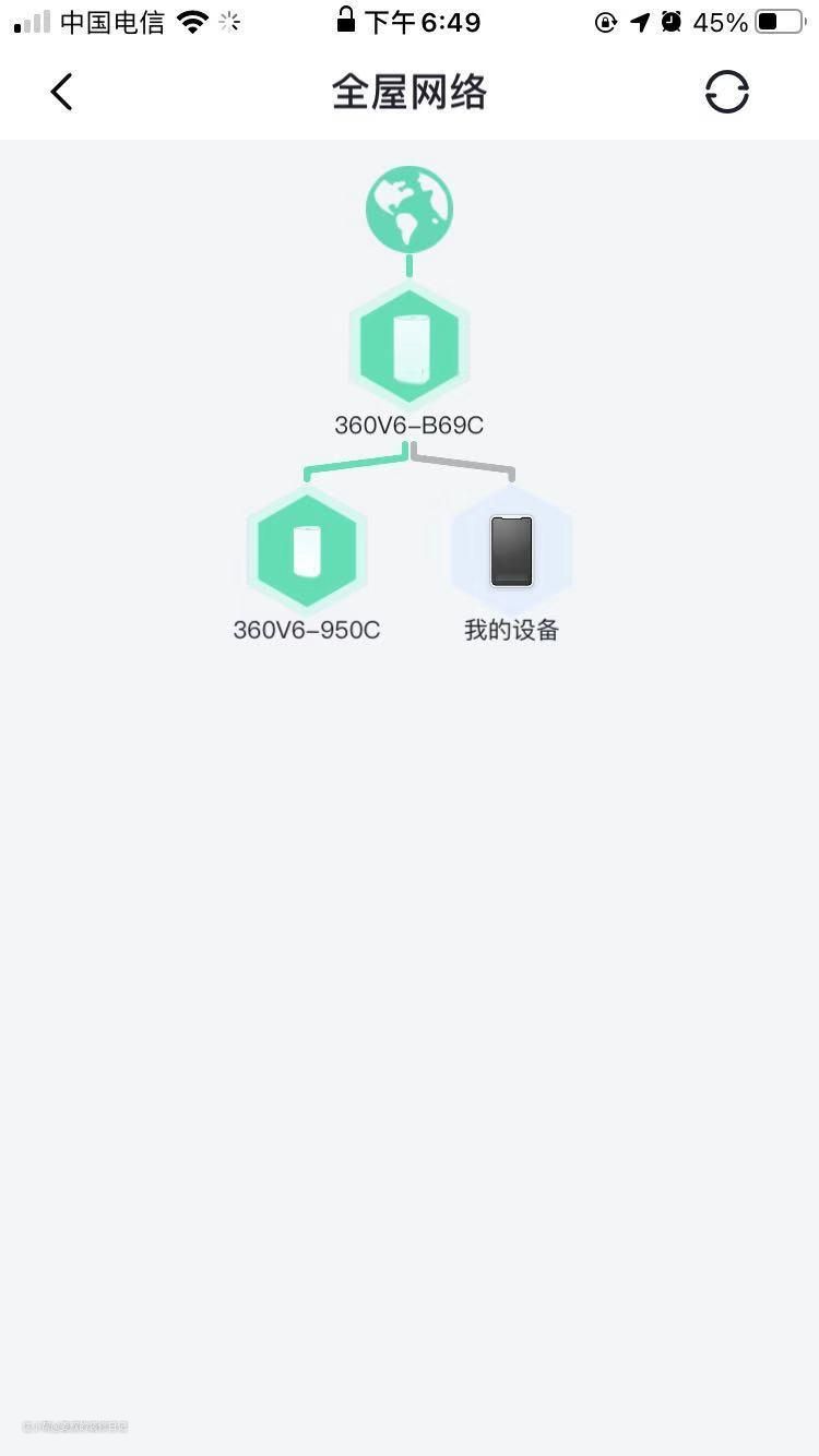 当你在移动位置时,手机会自动在两个路由器之间切换,不会出现断网重新连接的情况可无缝连接,这点非常好用,对我这种网络稳定性要求比较高的人来说,简直太好用了。下图是我在卧室时手机的网络状态,分身路由通过MESH方式连接到主路由上。