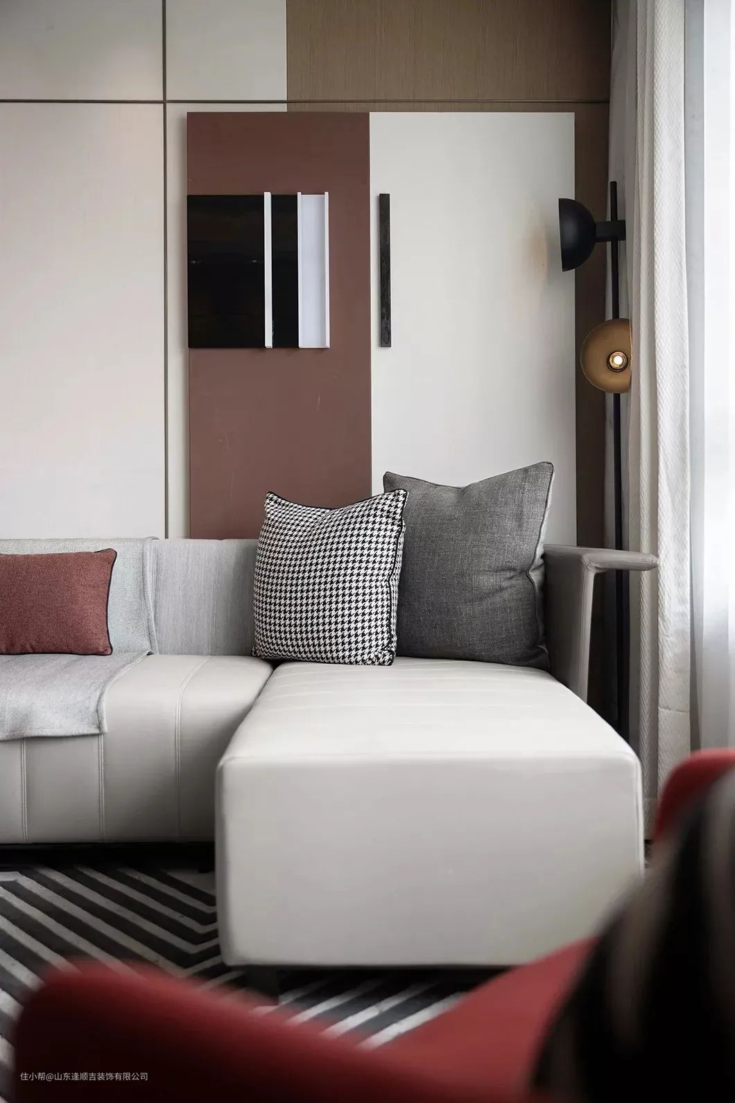 ▲沙发墙暗红色的挂画,还有靠窗红色的休闲沙发椅,也点缀出了客厅的高雅与时尚气质。