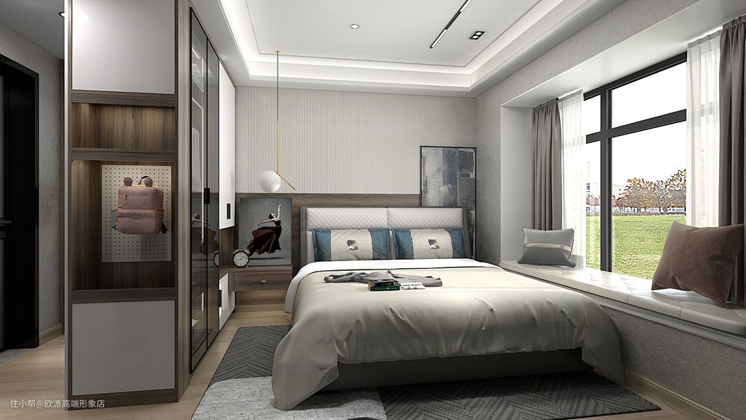 年轻夫妇的衣物是多样化的,一般将左右两边分别设置成男女方各自的储衣空间,柜体内的挂衣架通常分为长短两层分别储存大衣和上装,衬衫也可以放置于独立的小抽屉或搁板,不会因过多衣物挤压在一起而皱折难看。