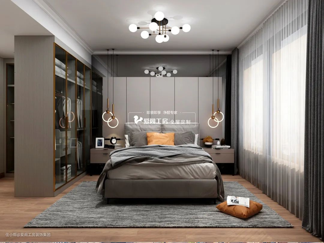 次卧作为长辈房,设计亲肤板典雅白到顶衣柜,充满温柔的艺术美感,满足日常收纳需求。