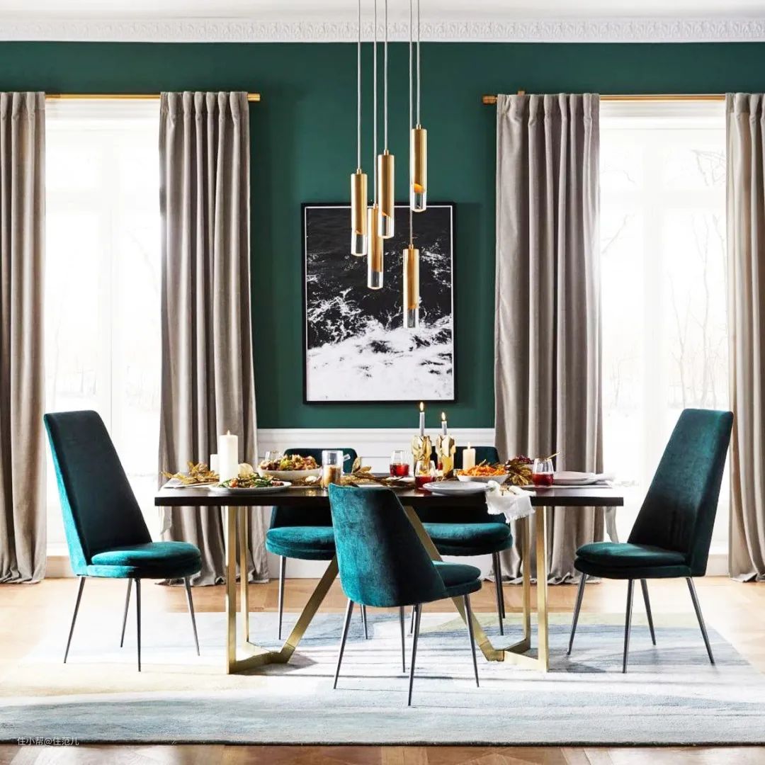 在餐桌旁边摆上一排天鹅绒椅子,有没有瞬间感觉穿越到了英剧里吃着早点喝着红茶?