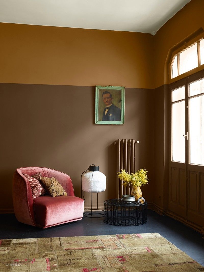 这种情况下天鹅绒窗帘可以比墙面颜色深一号。