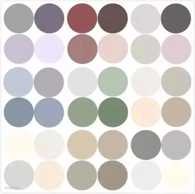 如果不想在用色上出错,可以选饱和度更低,看起来更舒服柔和的颜色来做同色系搭配。比如灰色、米白色、烟粉色、灰蓝等莫兰迪色系。