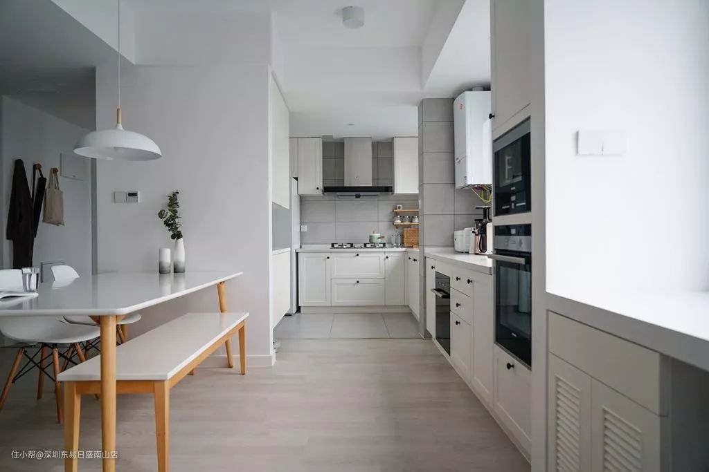 如果餐厨空间比较小,也可以把阳台包进来,这样你就有一个更大的厨房了。