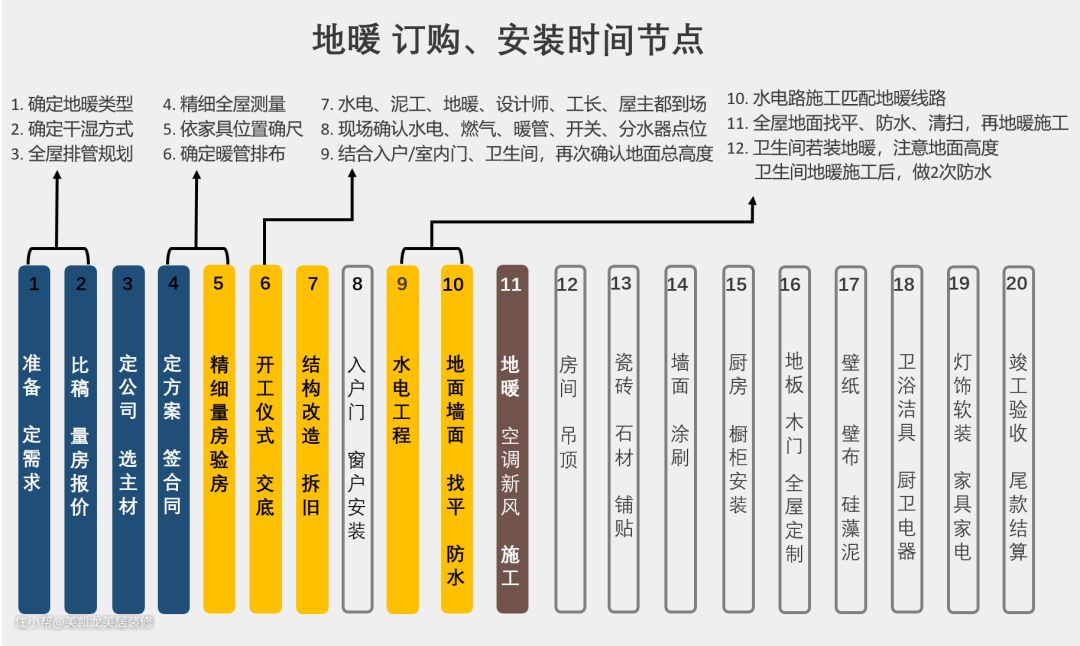 地暖会涉及到水、电、燃气,又关乎今后寒冷冬季的正常居住使用,以及地面平整度、会不会渗漏……这些“一旦发生,肠子悔青”的大事,施工那两天,建议家里最好有一位屋主,全程在场,以下重点三大项,盯!盯!盯!