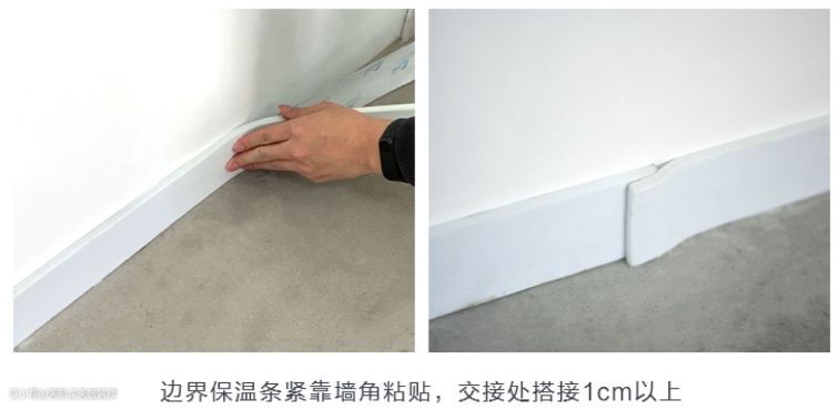 还要注意,边界保温条连接处应使用搭接,且搭接长度10mm以上。