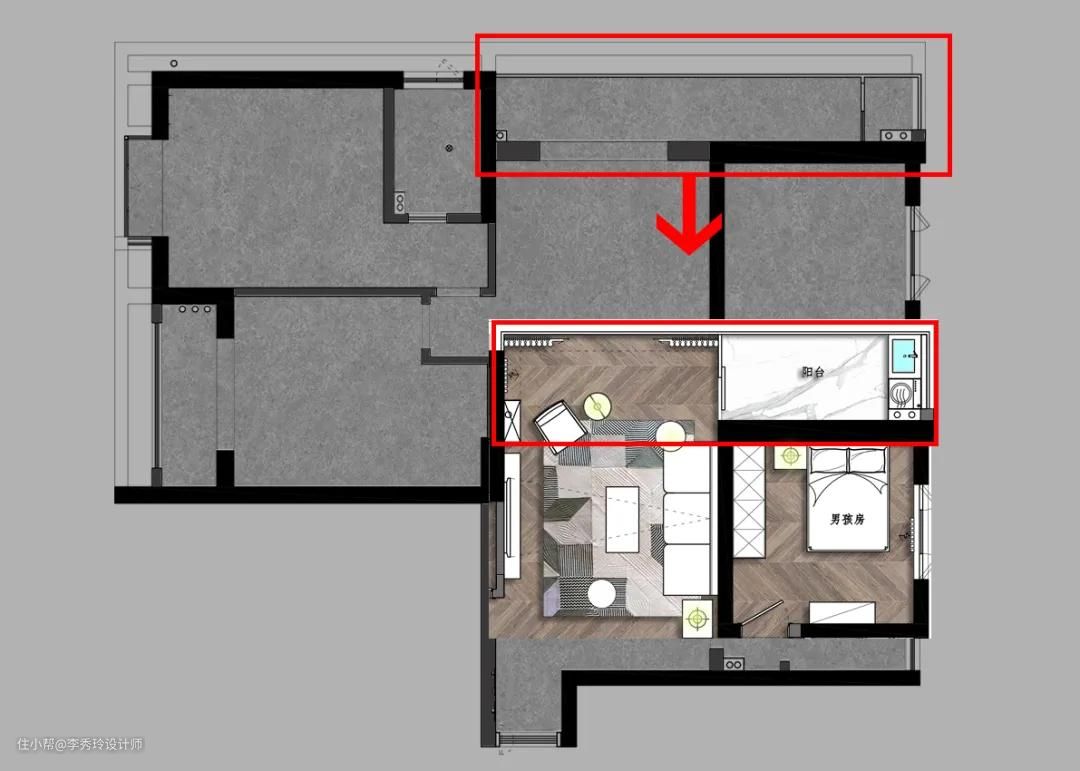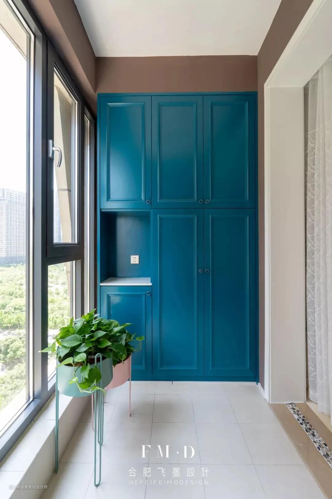 对于一些空间很大的阳台,我们可以将其一分为二,一半设计家政间,另一半设计其它功能。
