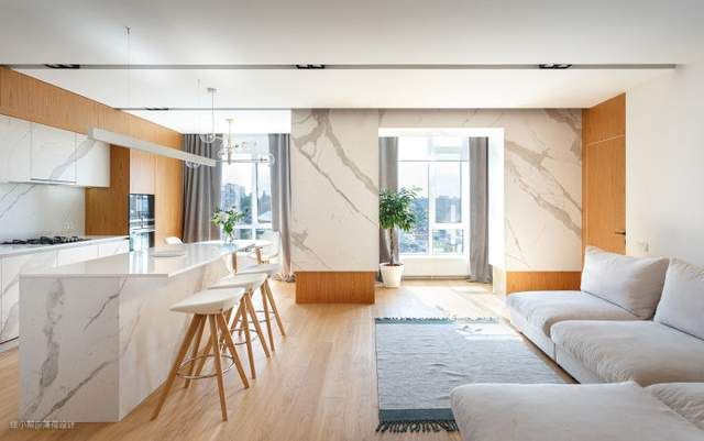 木饰面搭配天然大理石,打造出一种自然舒适又不乏时尚感的家居氛围。