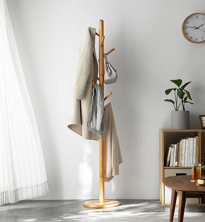 比如这款树形实木挂衣架,虽然看似无用,却能让频繁更换的衣物有个短暂栖息的机会,而不是随意散落在卧室四周,影响整体格调。