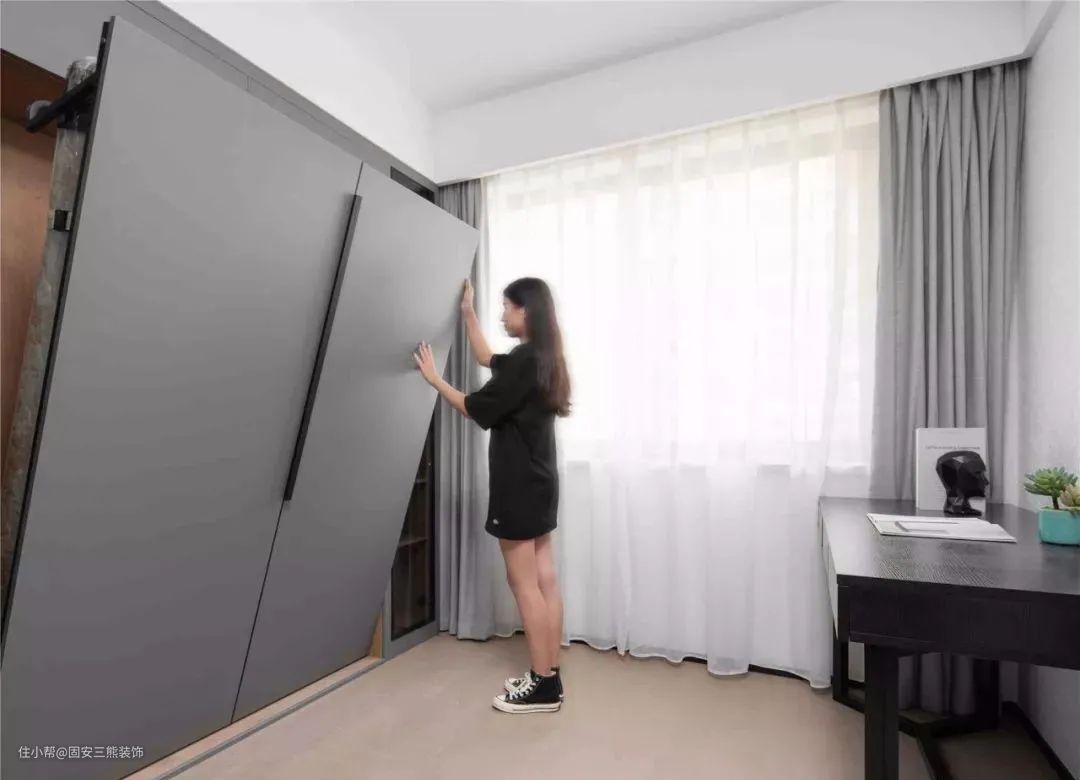 墨菲床就是隐形床,立起来就是柜子,放下来可以当床用,主要就是节省了房间的地面空间。但它对于五金件以及木作的安装精密度要求比较高,选用之前要做好功课。