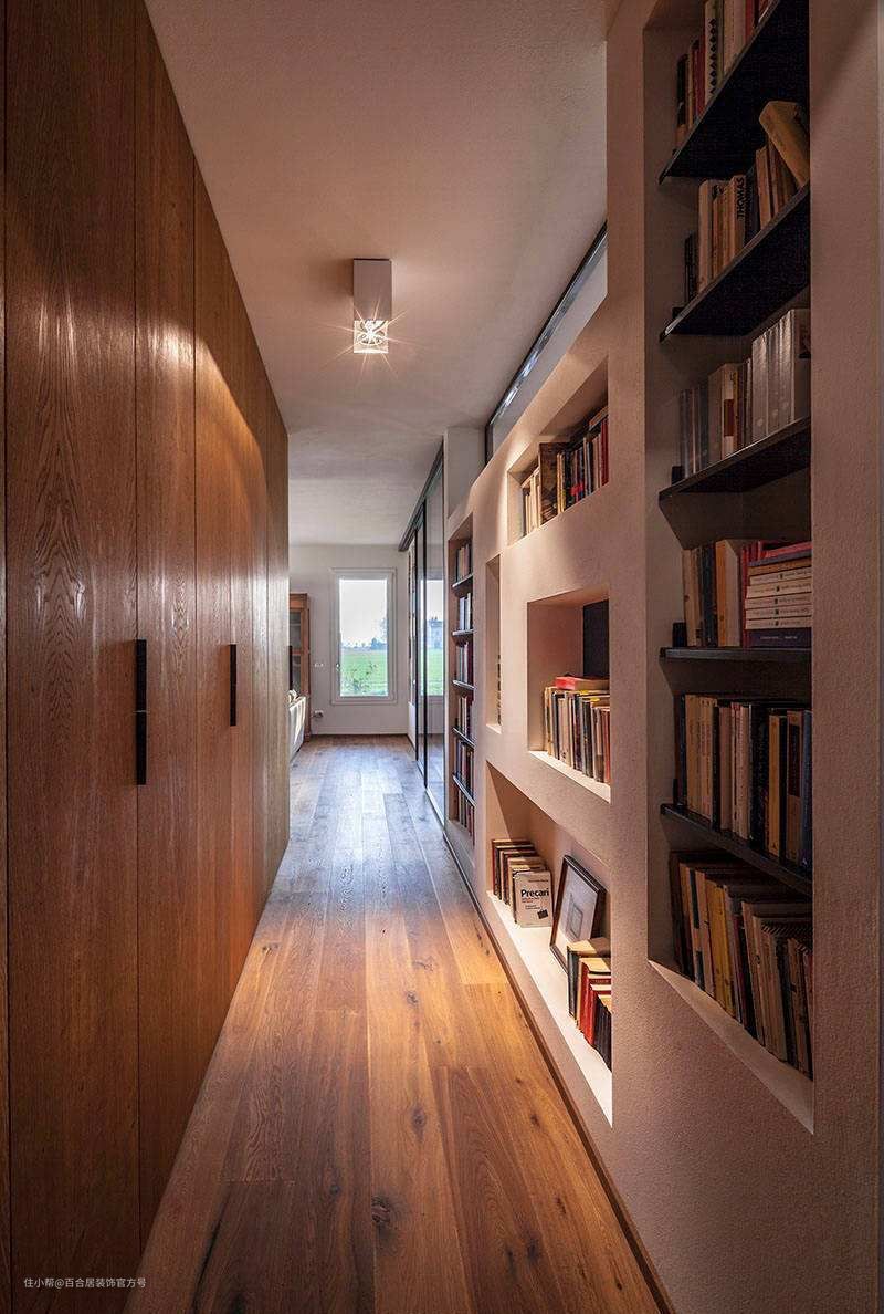 书架式的过道,会给过道一种书香气息,让原本单调、枯燥的空间,瞬间变得艺术感十足,这样过道一眼万年。