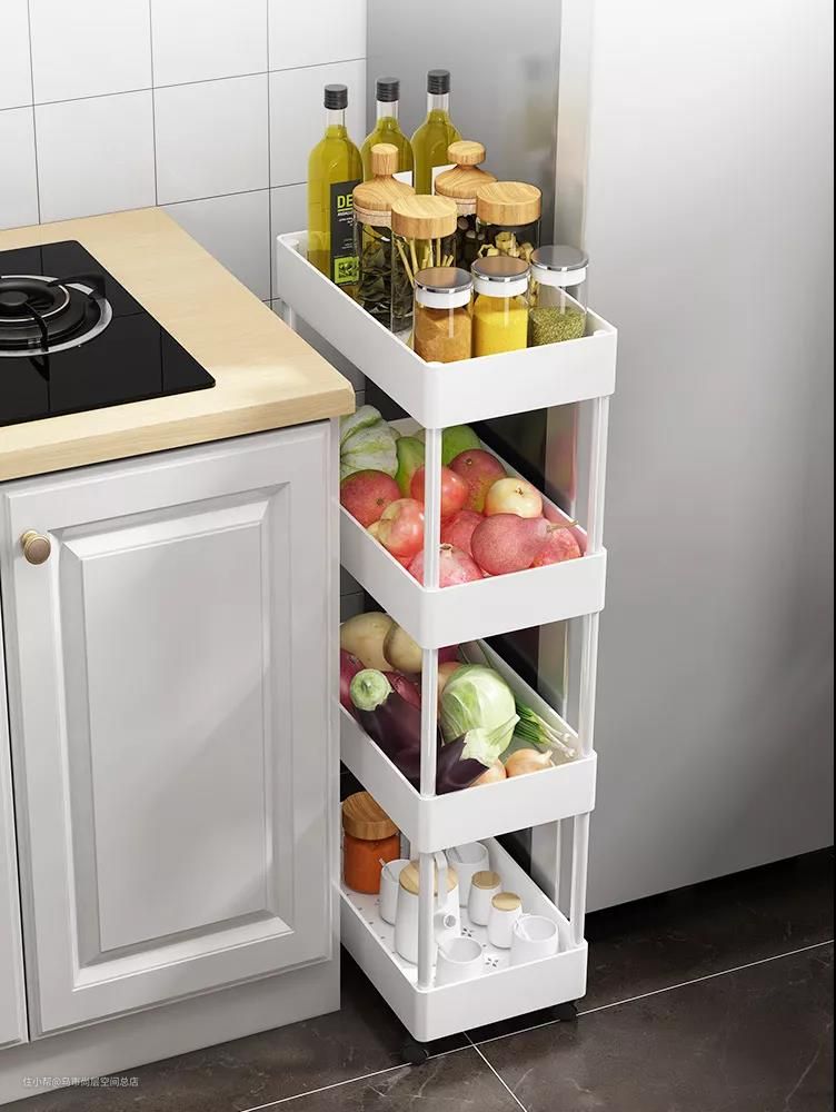 厨房有一些夹缝,但是放东西总不好放,怎么办?去某宝入手一个落地多层夹缝收纳架!