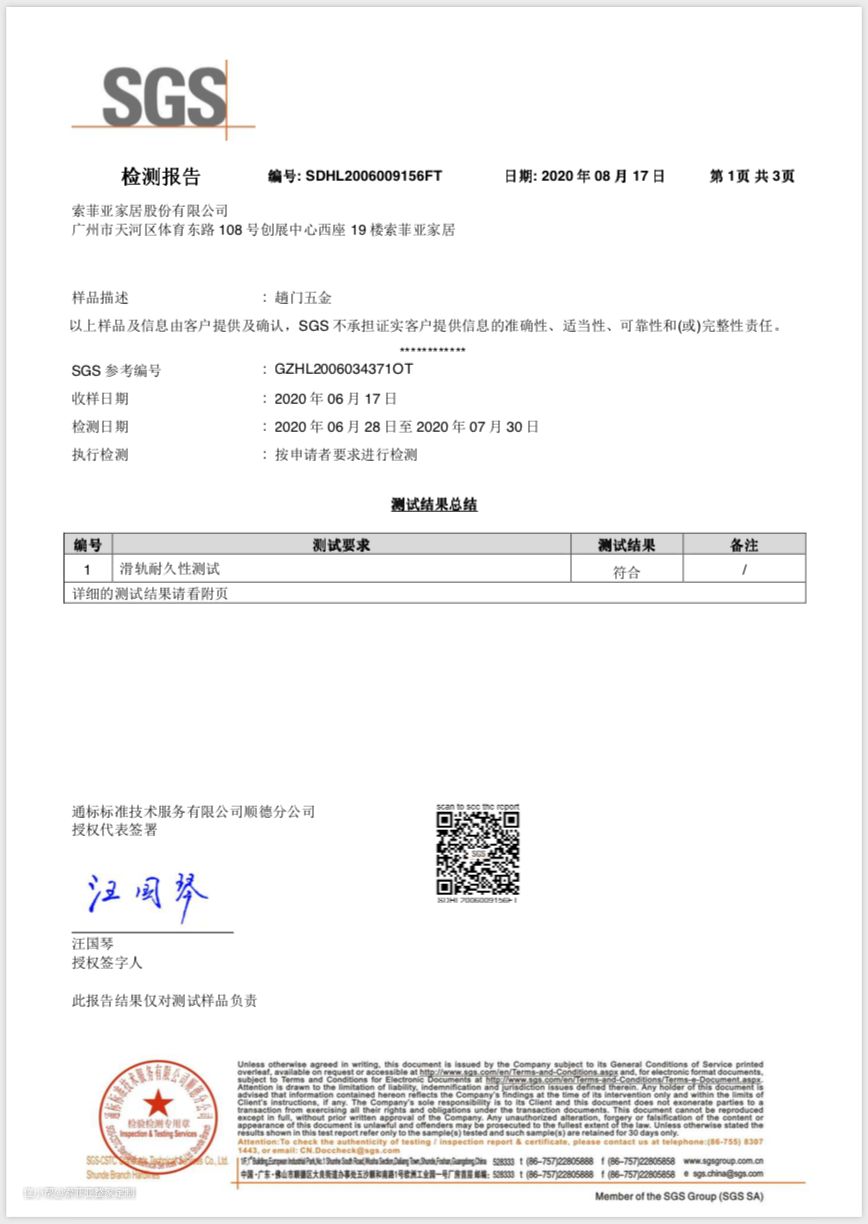 (索菲亚五金获得国际SGS认证)