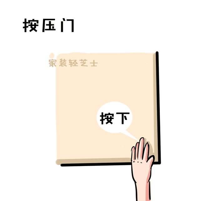 B:不想要按压式,觉得有时候反应不灵敏的,还可以将在柜门的底端或者顶端,做成一个暗槽的形式,这样只需要扣住柜门的上方和下方就能轻松开门啦~