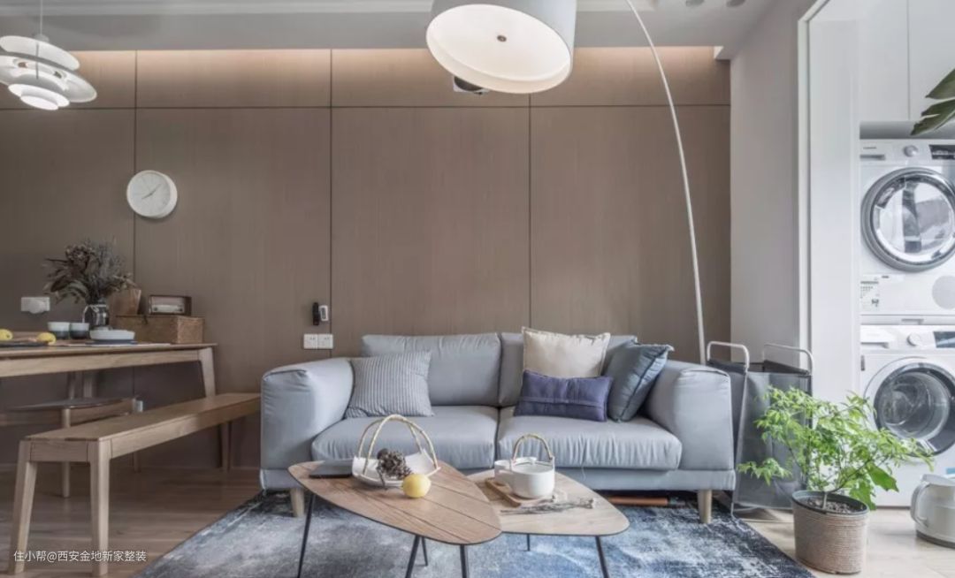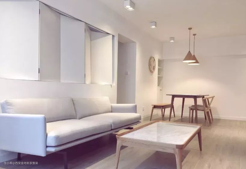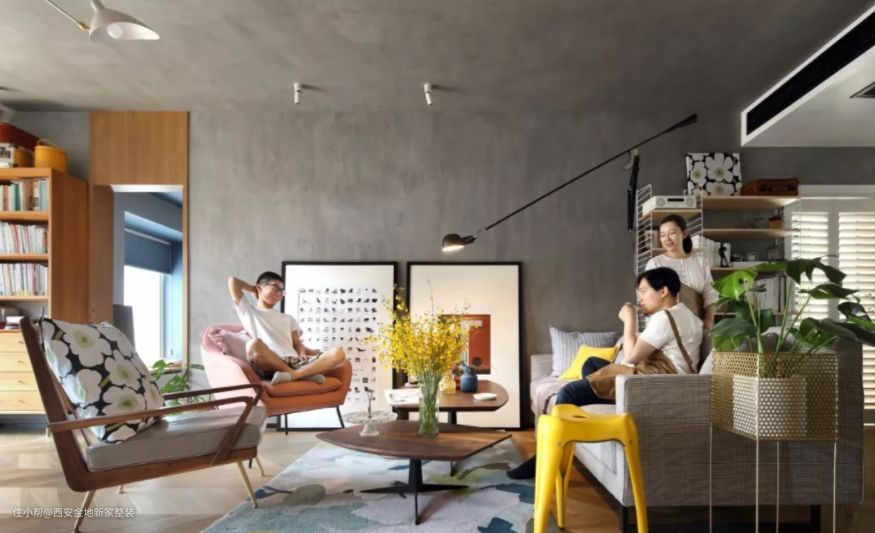 浅灰色墙面,搭配原木家具,简单却不会觉得单调。不过,真正的惊喜在沙发墙上:
