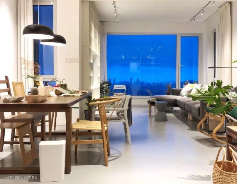 她家拥有无敌山景房的地理优势,客厅两面都是大窗户,自带美景效果。所以背景墙只需要简单就好,记住less is more!