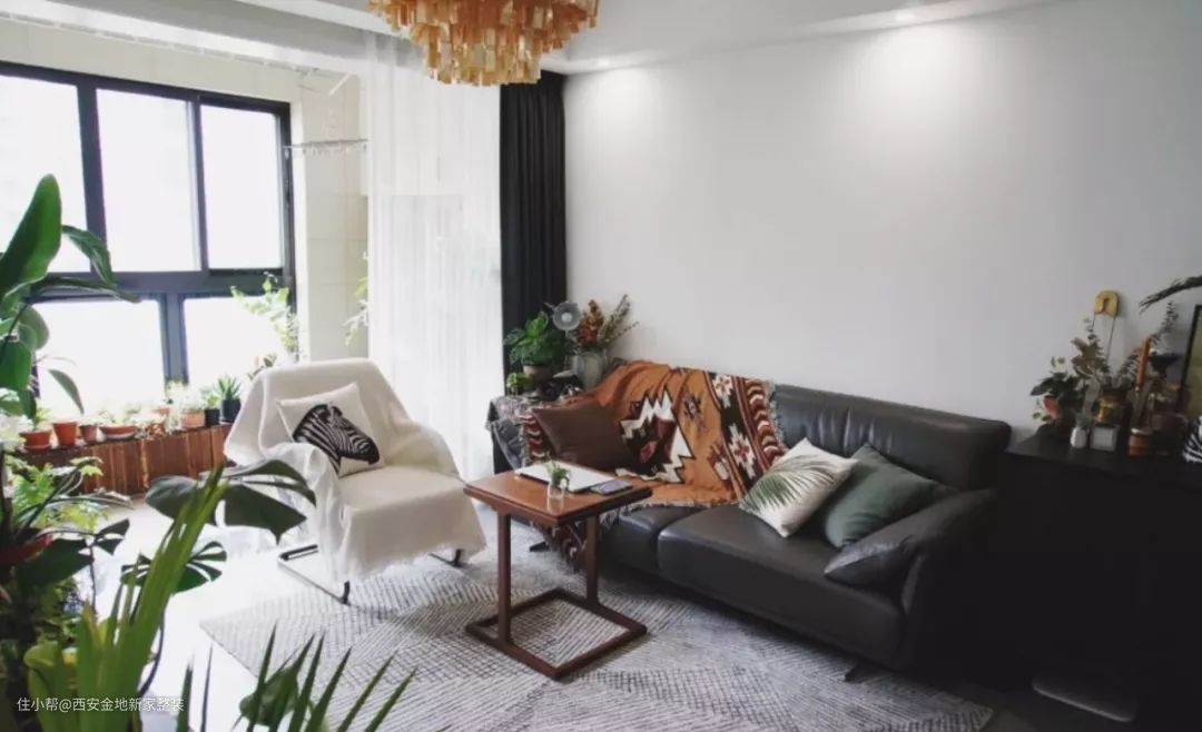 这个家让人看起来与众不同的,在于用心的细节。比如张牙舞爪灯、黄铜杂志架,体现屋主的品味和偏好,多了几分时髦感。