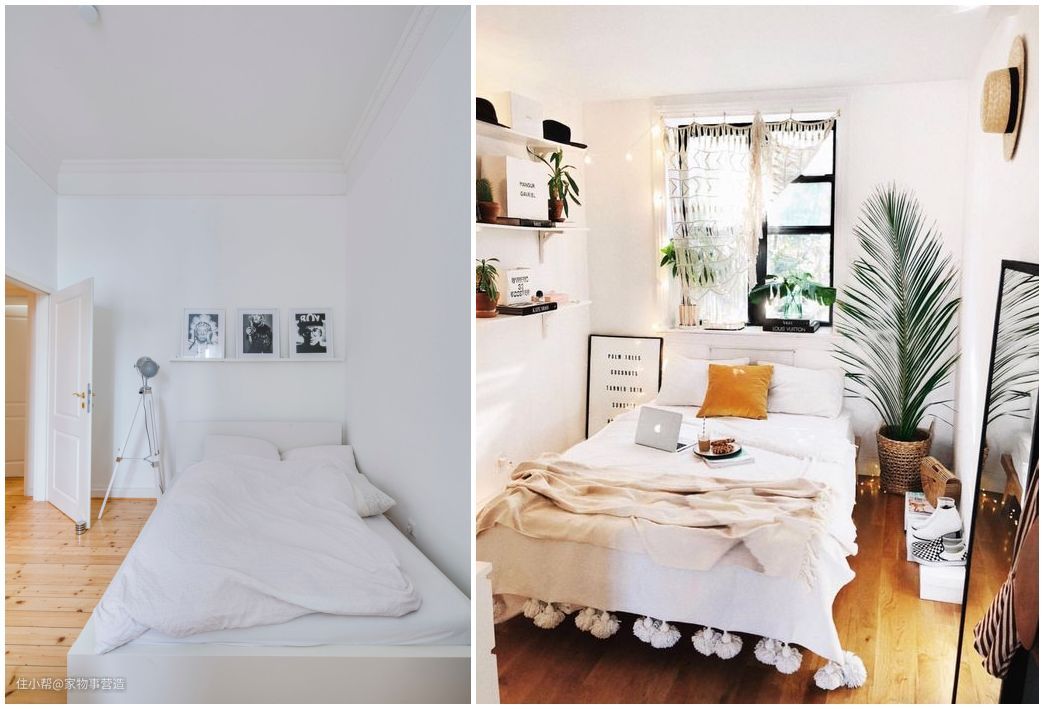 1、必备家居家具,譬如床。那么就可以考虑是否可以去掉一些不必要的家具,比如床头柜、衣柜。