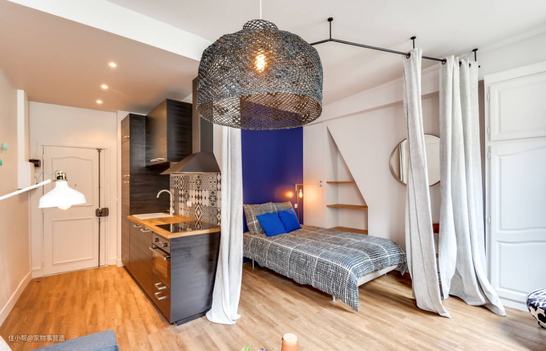 ③、如果是在厅内隔出一个卧室,可选用布帘、收纳柜等隔断,与厅共享空间和动线。