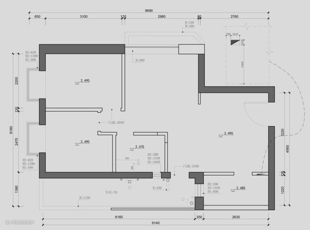 3、室内所有的墙体,都以玻璃隔断来处理,解决室内采光差的问题。