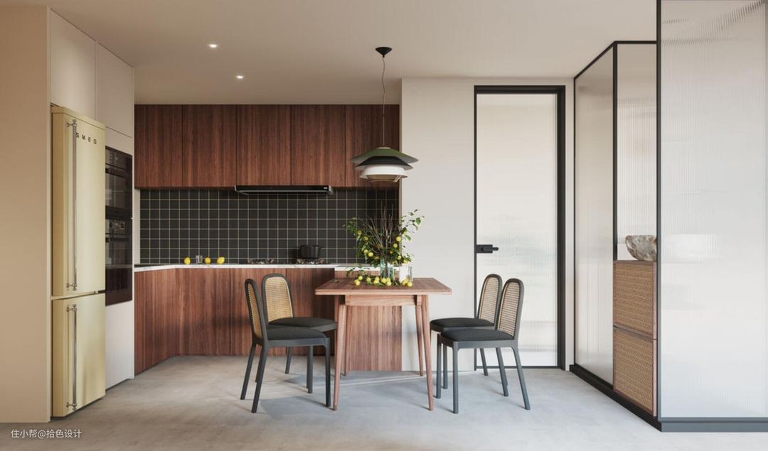 1、餐厅及厨房采用一体化结构来设计,提高空间的通透性,以及使用面积。