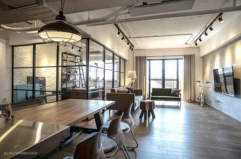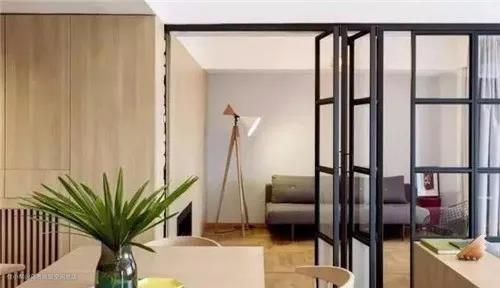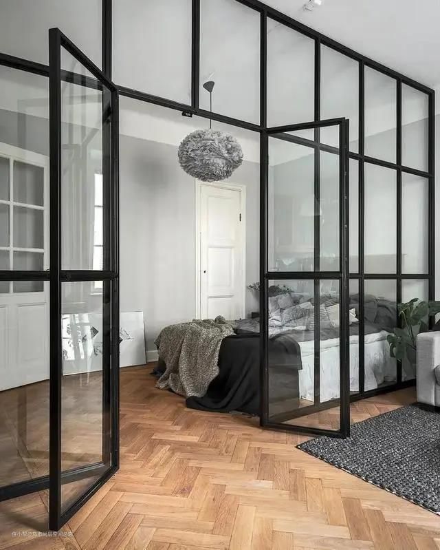 黑框玻璃的优缺点很明显,优点是颜值高,自成视觉焦点;隔而不断,容易营造空间的通透感,顺便改善采光,堪称小户型的“救星”!